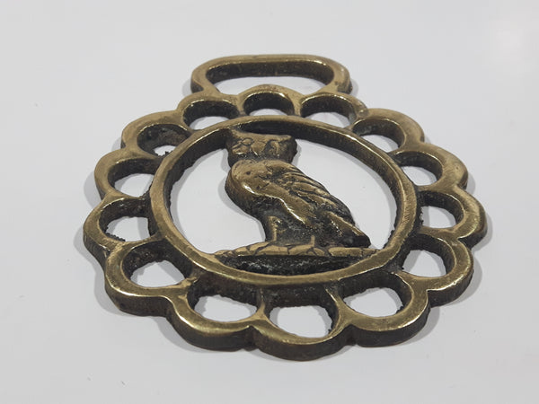 Antique Owl Themed Horse Brass 2 3/4" x 3 1/4"