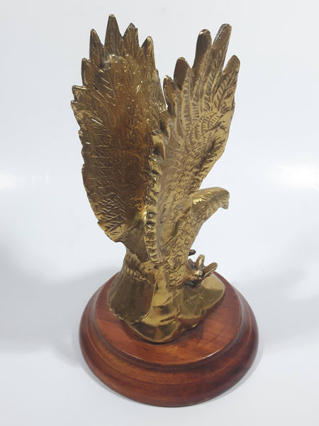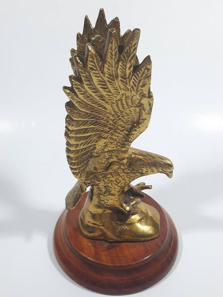Solid Brass Metal Eagle Ornament on Wood Base