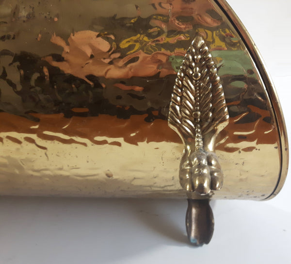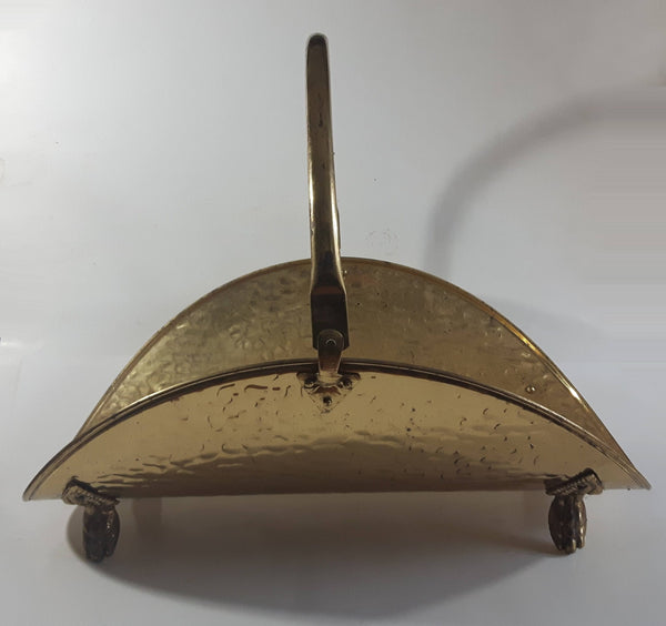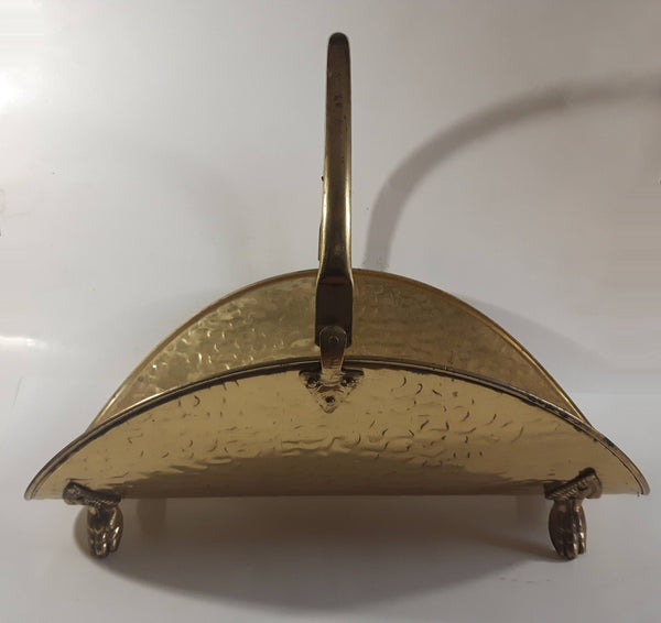 Vintage 20" Brass Claw Foot Fireplace Wood Log Holder