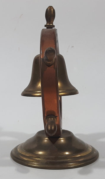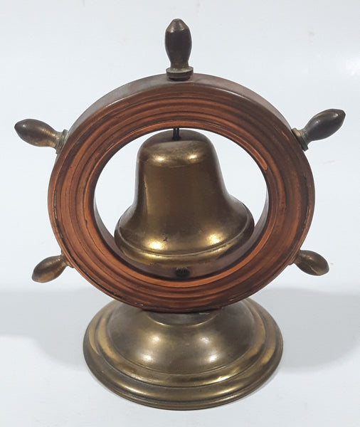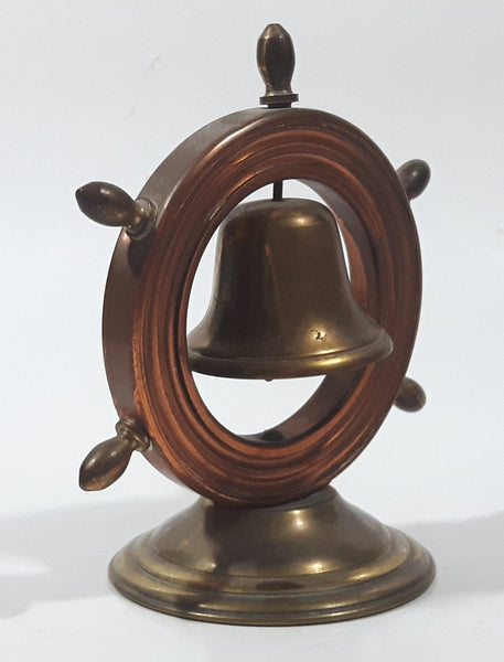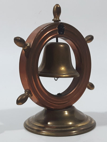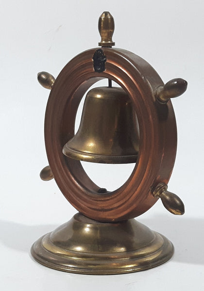 Vintage Copper Captain's Ship Wheel with Brass Bell and Base 4 1/2" Tall