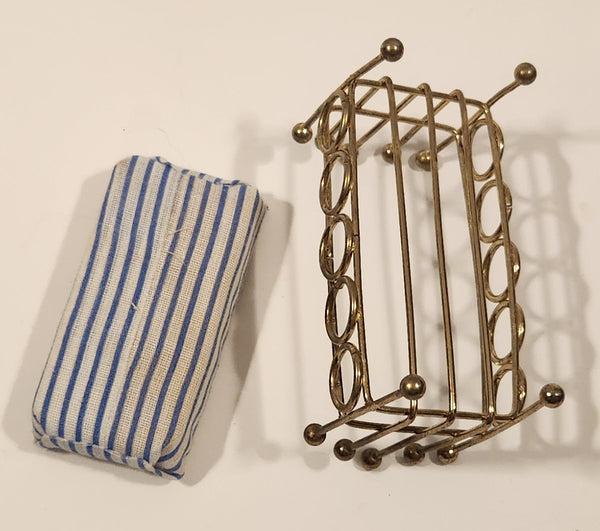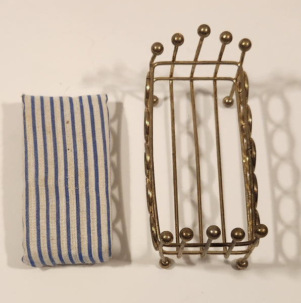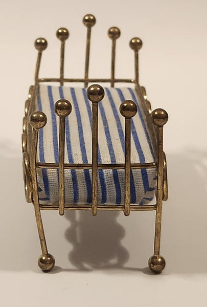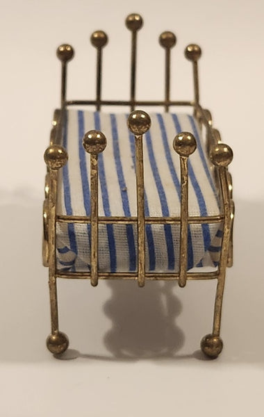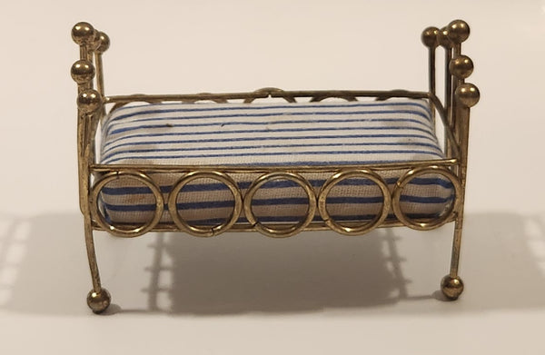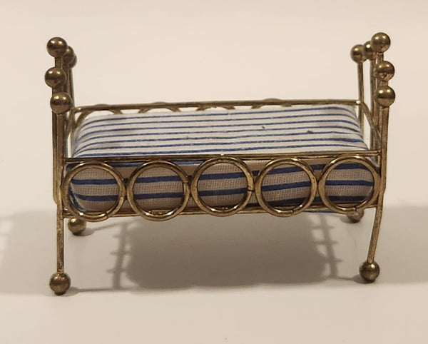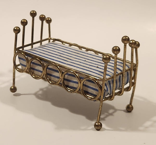 Vintage Doll Bed with Mattress Dollhouse Brass Miniature 3 1/2" Long