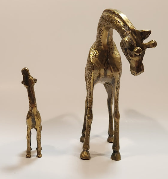 Vintage Mother Giraffe and Baby Giraffe Set of Brass Figurines