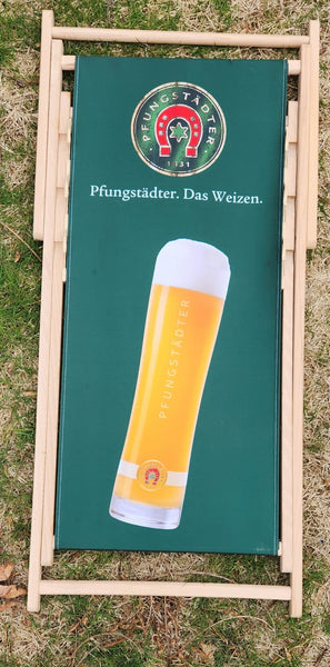 Pfungstadter Das Weizen Beer 20 1/2" x 46" Green Fabric Wooden Adjustable Folding Lounge Beach Chair