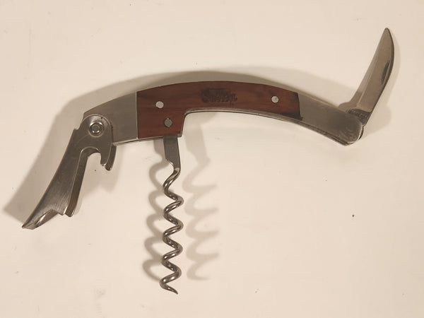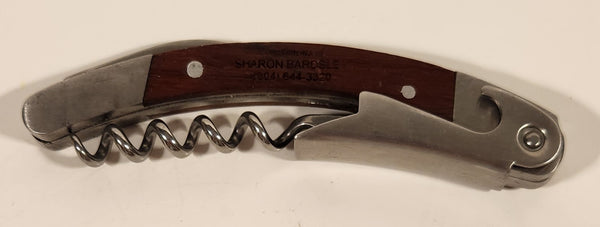 Sutton Compliments Sharon Bardsley Multi Tool Folding Pocket Knife Bottle Opener Cork Screw with Inlaid Wood