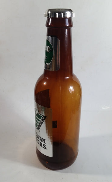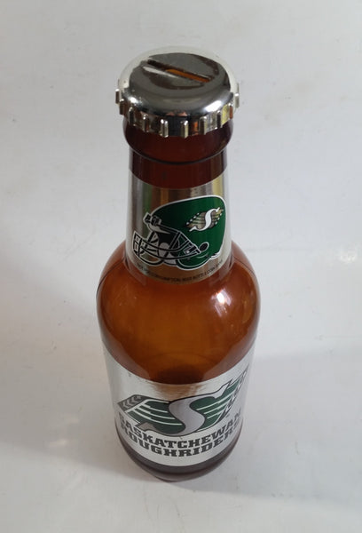 CFL Saskatchewan Roughriders Football Team Plastic 14" Tall Brown Beer Bottle Shaped Coin Bank