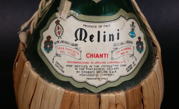 Vintage 1969 Melini Chianti Wicker Wrapped 95 Centiliter Glass Wine Bottle Made in Italy
