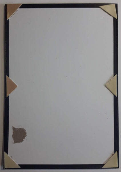 Good condition. Small little paper peel on the back side. Does not have a hanger on the back but has 6 sticky pads that appear to be dry. View photos.