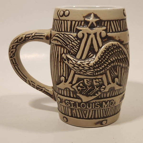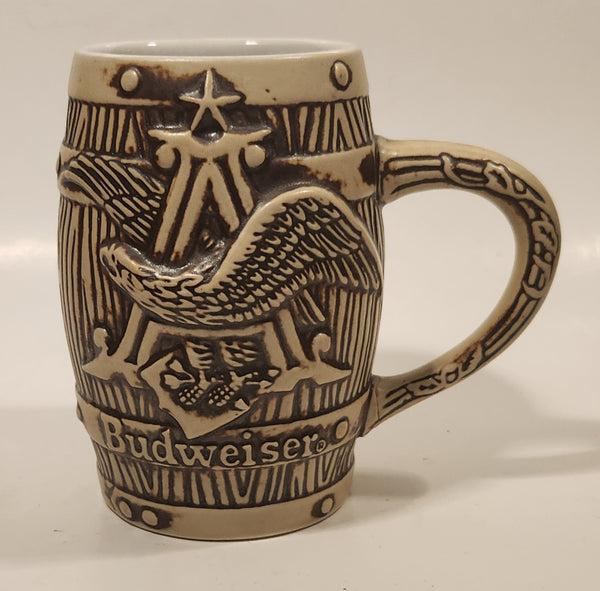 Ceramarte Brazil Budweiser Beer A & Eagle St. Louis Barrel Shaped 5 1/2" Tall Embossed Stein Mug