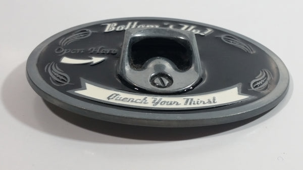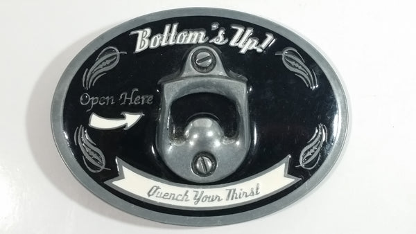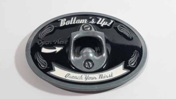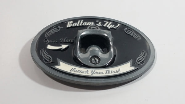 "Bottom's Up" "Open Here" "Quench Your Thirst" Metal Belt Buckle Beer Beverage Bottle Opener Novelty Collectible