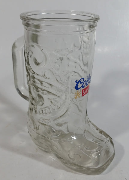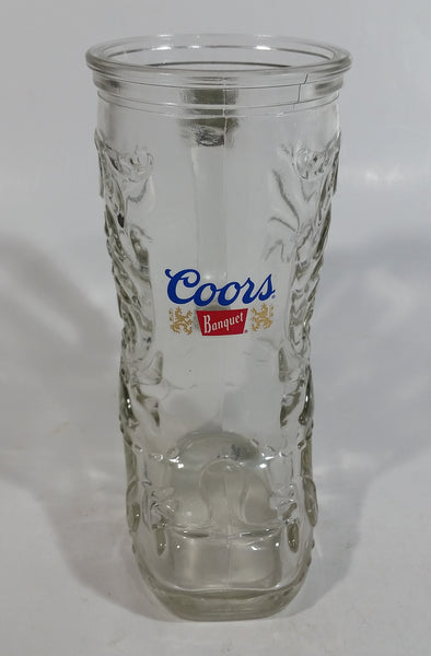 Coors Banquet Beer Cowboy Boot Shaped Embossed Glass 6" Tall Beer Mug
