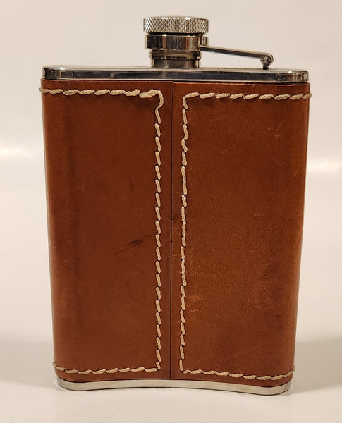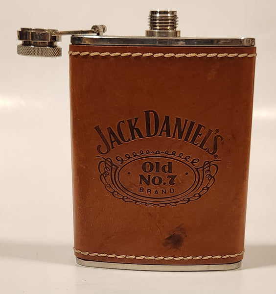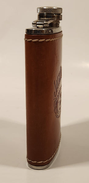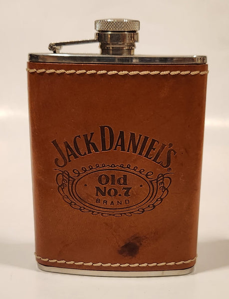Jack Daniels Old No. 7 Brand Whiskey Brown Leather Covered Cuved 6 Oz. Stainless Steel Flask