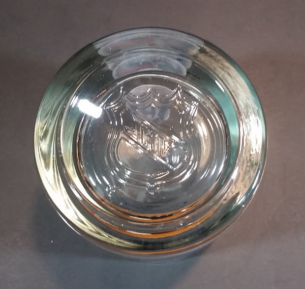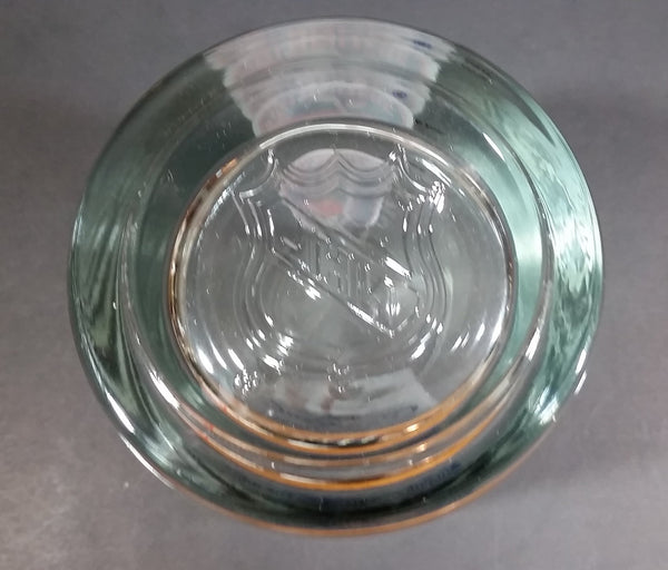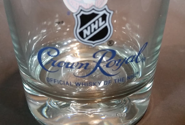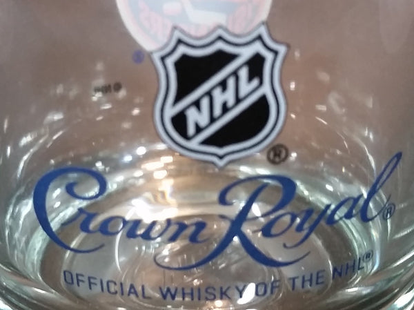 Official NHL product. Embossed NHL logo on the base, printed team logo on one side, printed NHL logo, Crown Royal logo, and slogan "Official Whisky of the NHL"