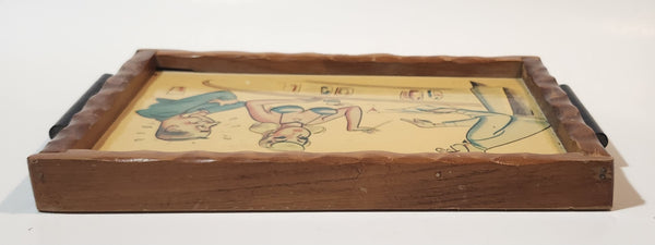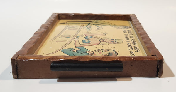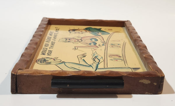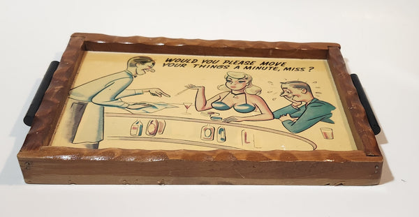 Vintage 1950s Would You Please Move Your Things A Minute, Miss? Wood Framed Lacquered Picture Tray