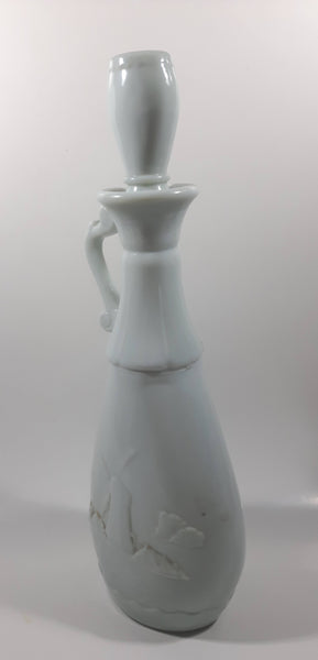 Vintage 1963 Jim Beam Whisky Delft Blue Windmill and Boat 13" Tall Decanter Bottle