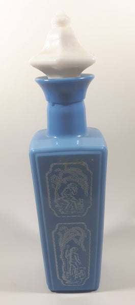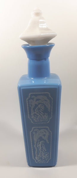 Vintage 1965 Jim Beam Whisky Blue Milk Glass Style 12 1/2" Tall Decanter Bottle
