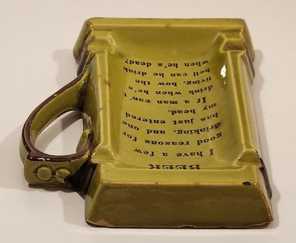 Vintage BEER Stein Mug Shaped Moss Green Ceramic Ashtray