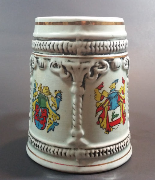 Vintage Enesco Japan Light Blue Embossed Coat of Arms Gold Trim Beer Stein