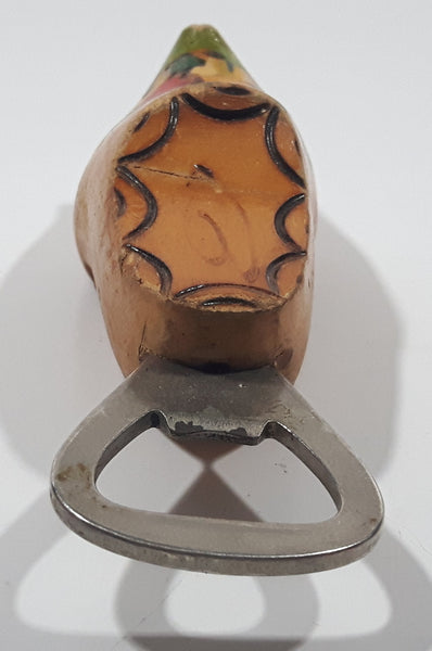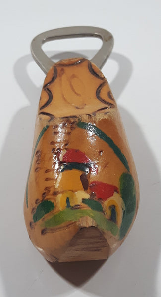 Vintage Holland Dutch Windmill Scene Wood Clog Shoe Metal Bottle Opener