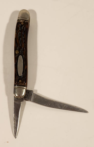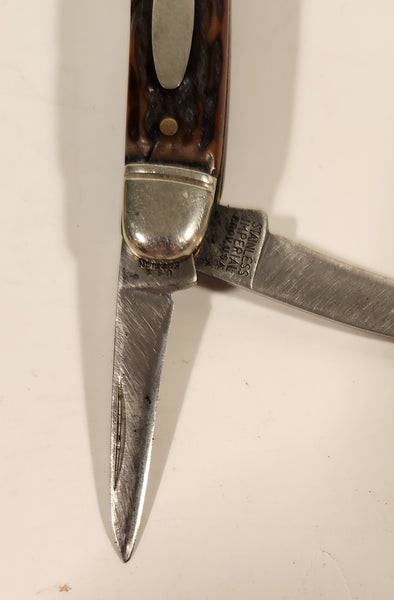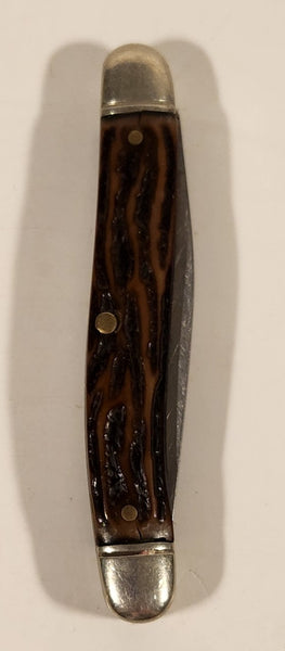 Vintage Imperial Stainless USA Two Blade Brown Textured Handle Folding Pocket Knife