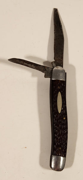 Vintage Monarch Japan #2205 Two Blade Brown Textured Handle Folding Pocket Knife