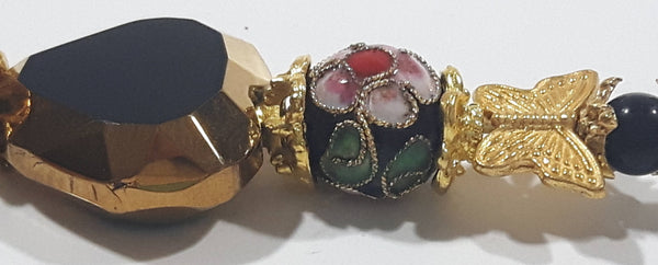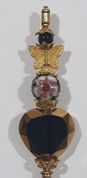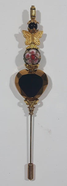 Vintage Butterfly Plastic Heart and Flower Themed Cloisonne Hat Golden Tone Metal Stick Pin