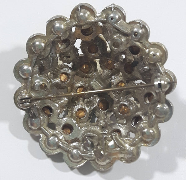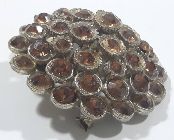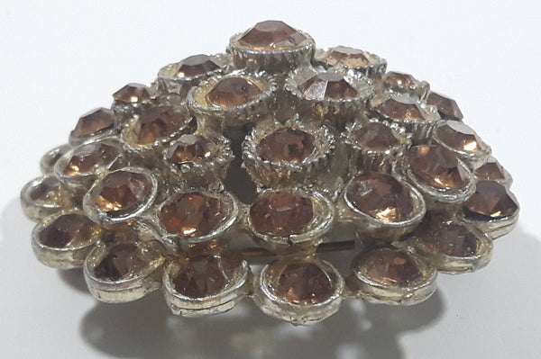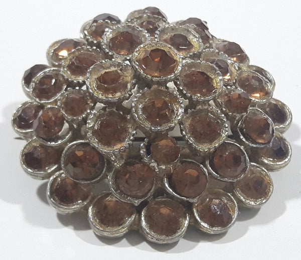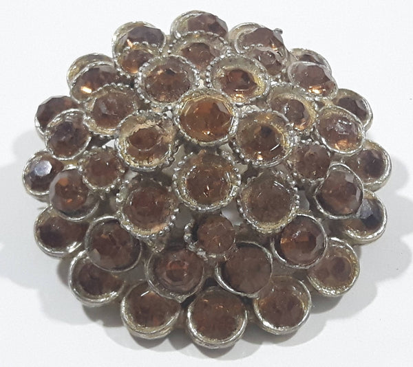 Vintage Circular Layered Brown Rhinestone Brooch Pin