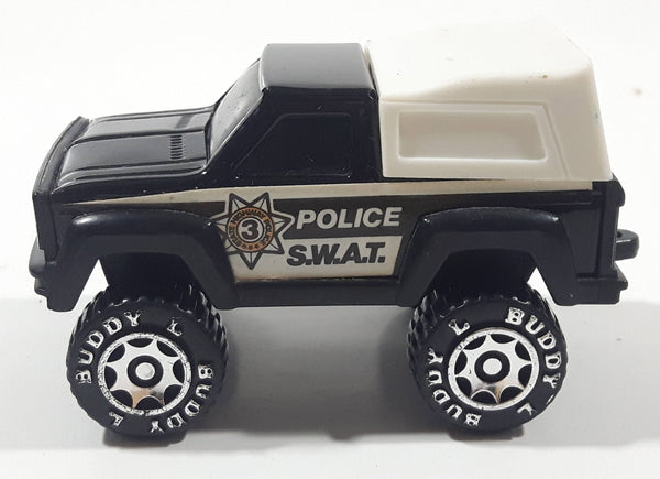 Vintage 1984 Buddy L Pickup Truck with Cap #3 Police S.W.A.T. Black and White Pressed Steel and Plastic Toy Car Vehicle
