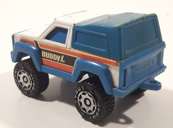 Vintage 1984 Buddy L Pickup Truck with Cap Blue and White Pressed Steel and Plastic Toy Car Vehicle
