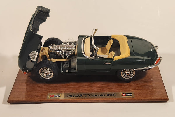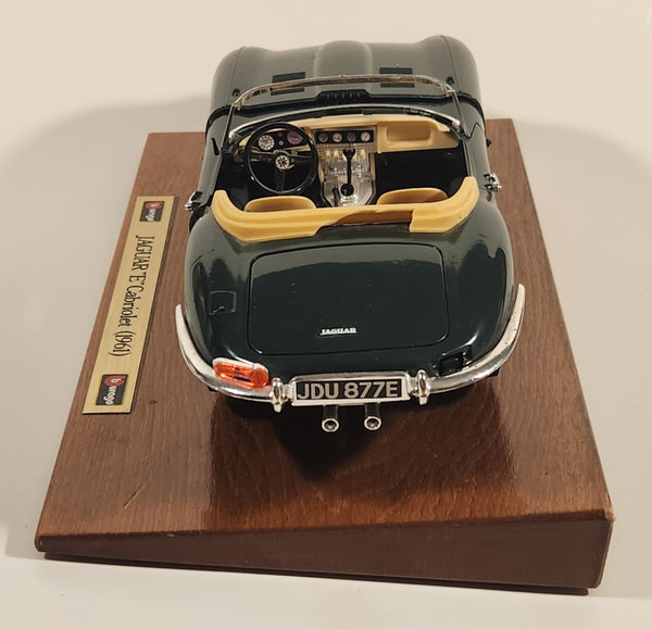 Burago 1961 Jaguar "E" Cabriolet Green 1/18 Scale Die Cast Toy Car Vehicle on Wood Display Stand JDU 877E