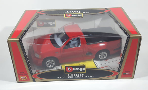 Burago Gold Collection Ford SVT F150 Lightning Red 1/21 Scale Die Cast Toy Car Vehicle with Opening Doors, Hood, and Tail Gate New in Box