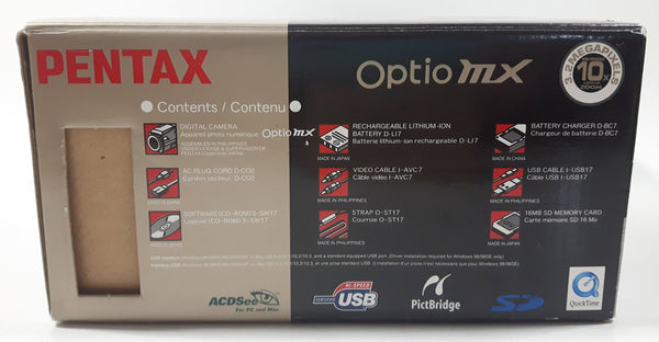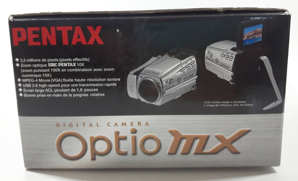 Pentax Optio MX 3.2 Megapixel 10x Optical Zoom Digital Photo And Movie Camera with Box and Some Accessories NOT TESTED
