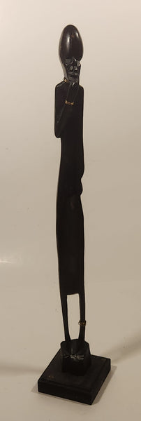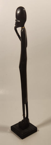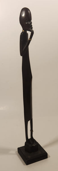 African Man with Hand On Chin Pondering 19 3/4" Hand Carved Wood Sculpture