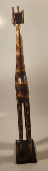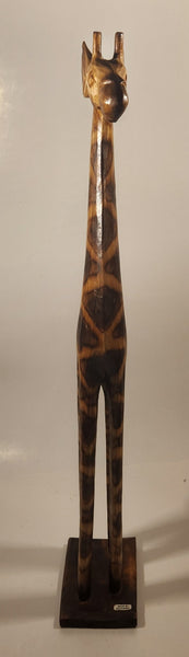 Hand Carved Wood Giraffe 23 1/2" African Animal Sculpture Made in Indonesia