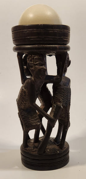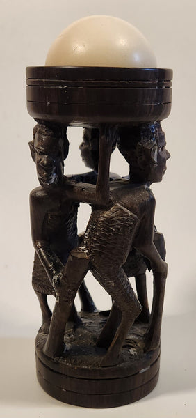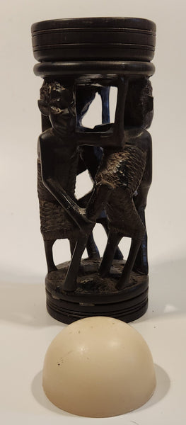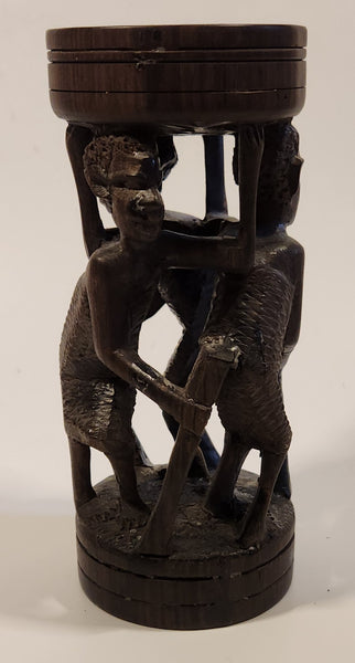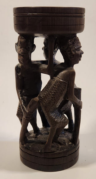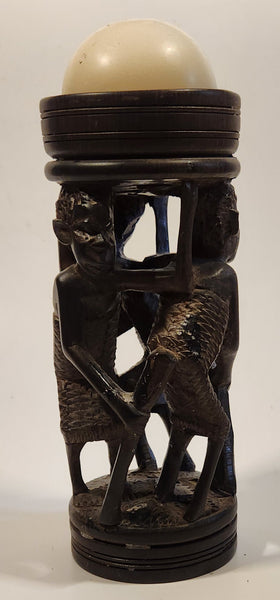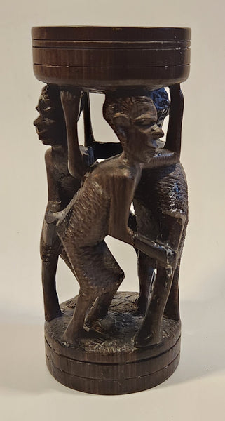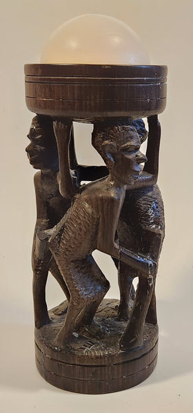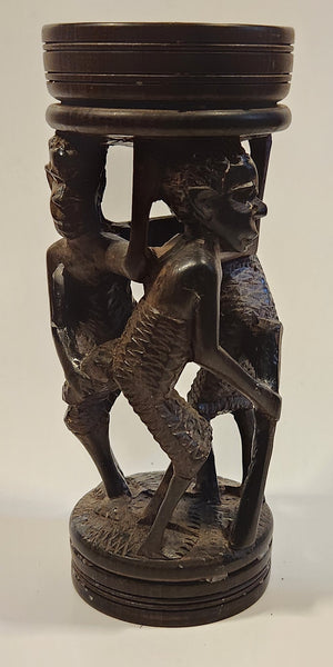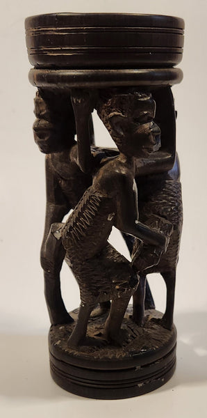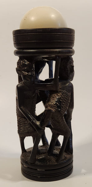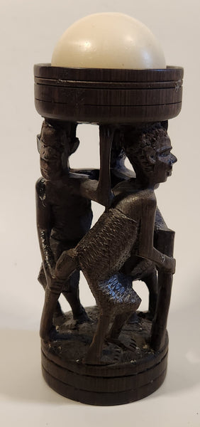 Malawi Tribal People 6 1/2" Hand Carved Wood African Sculpture with Wax Hemisphere