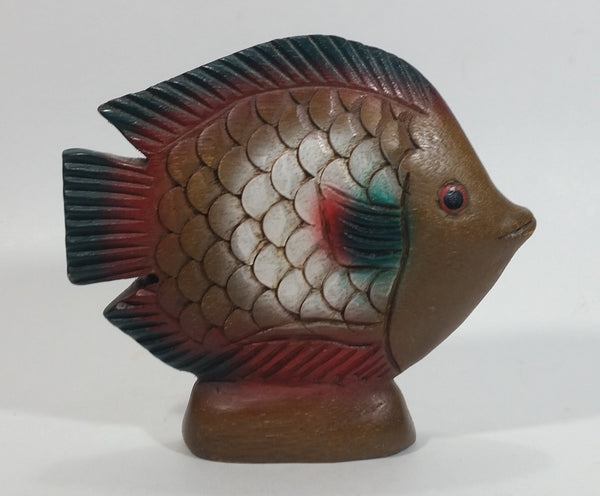 Vintage Hand Painted Hand Carved Tropical Fish Wood Carving