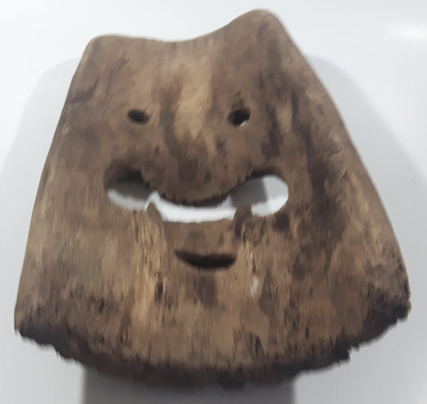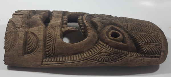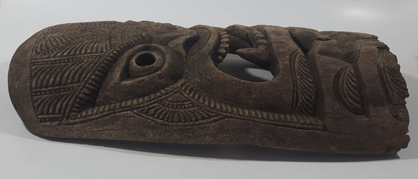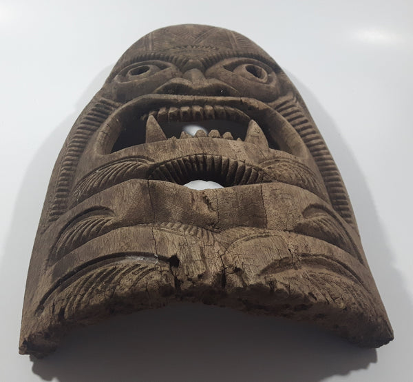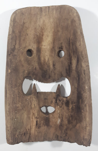 Vintage Tiki God Bottom with Fangs Detailed 8 3/4" x 15" Curved Carved Wood Mask