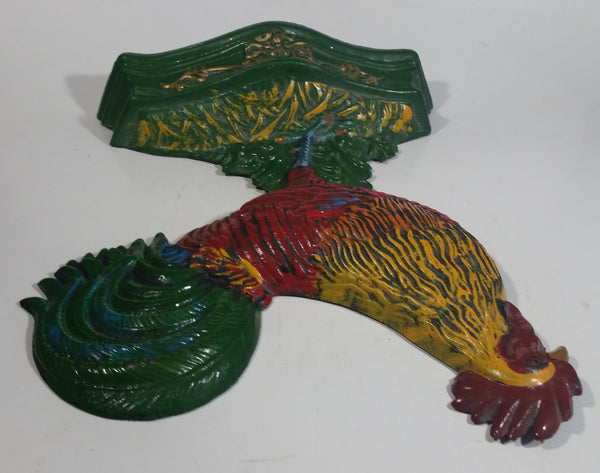 Antique Metalware Colorfully Beautifully Painted 13 1/2" Tall Cast Iron Chicken Rooster Door Stop