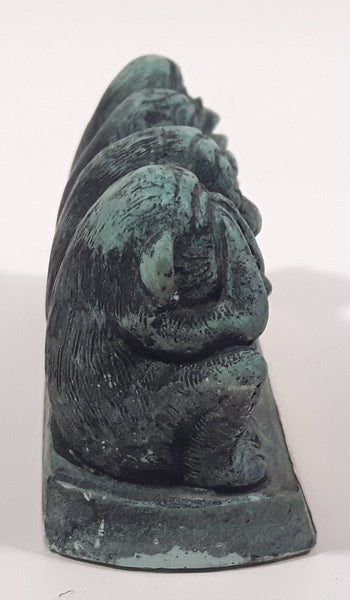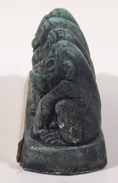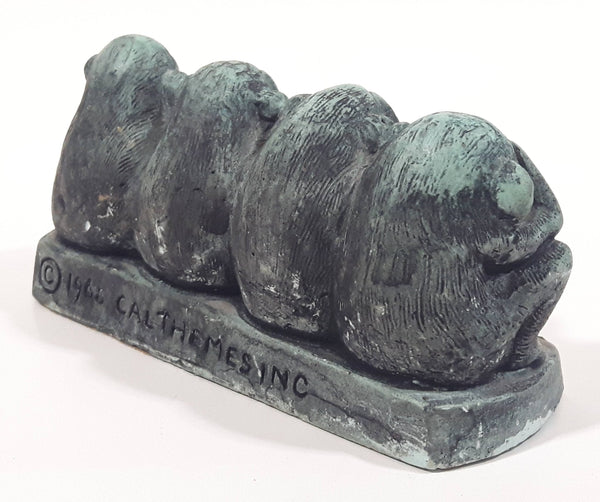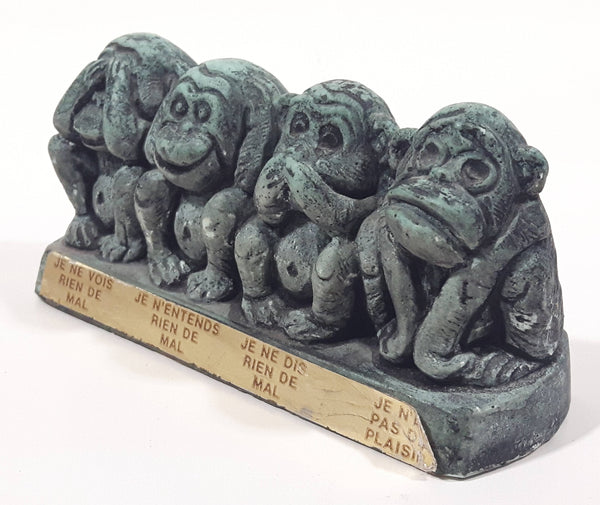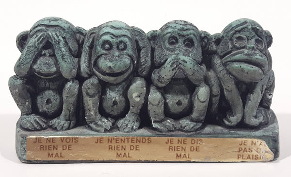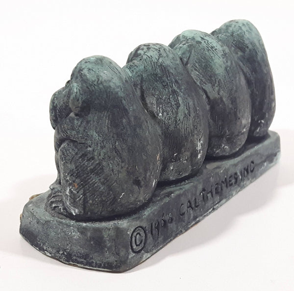 Vintage Cal Themes Inc. 1968 4 Wise Monkeys See No Evil Have No Fun Green Chalk Ware Figurine