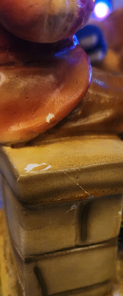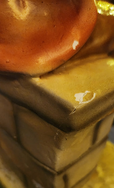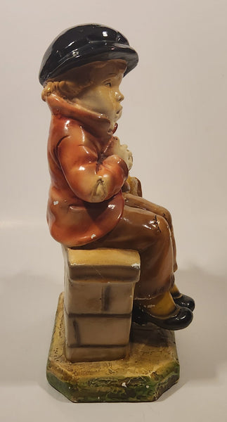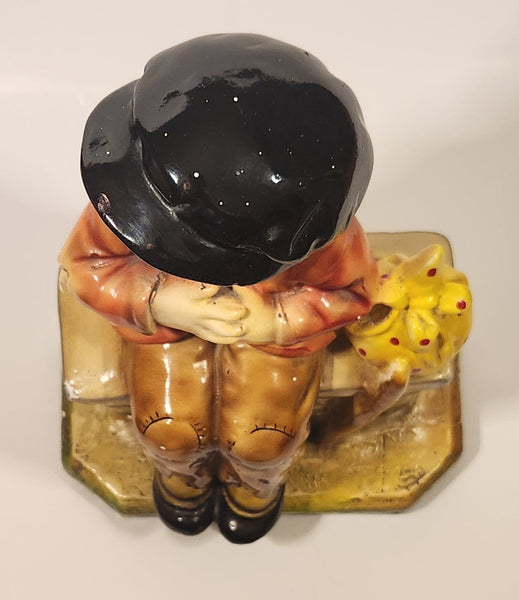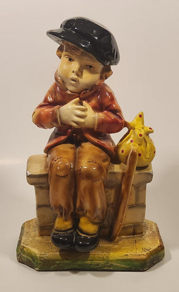 Vintage Devon Ware Boy Sitting with Hobo Stick 10" Tall Chalkware Sculpture