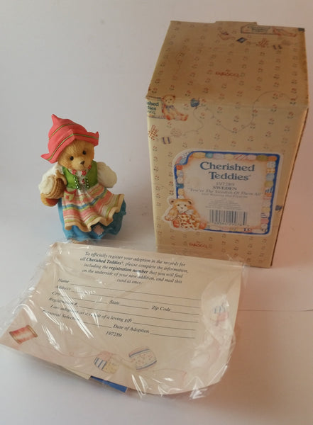 Cherished Teddies Girl Wearing Hat Figurine Sweden "You're The Swedish Of Them All" 1996 #951137 In Box w/ Certificate