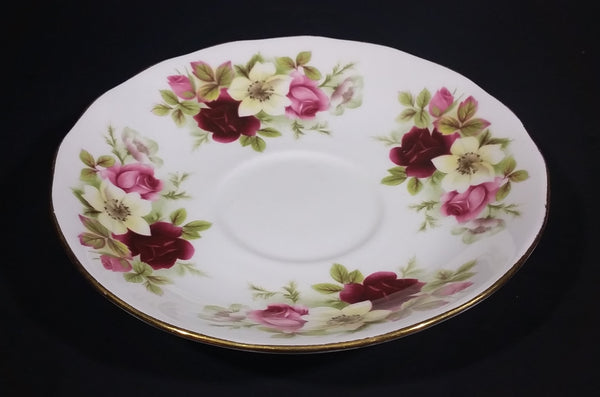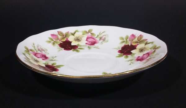 1959-1964 Queen Anne Bone China England Pink Roses and Yellow Wild Roses Pattern Gold Trim Teacup Saucer