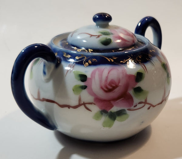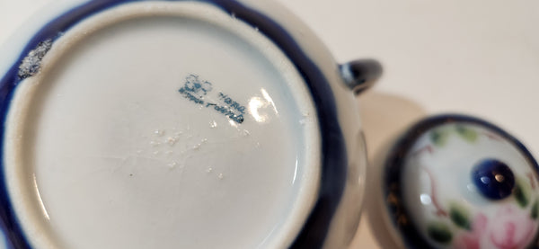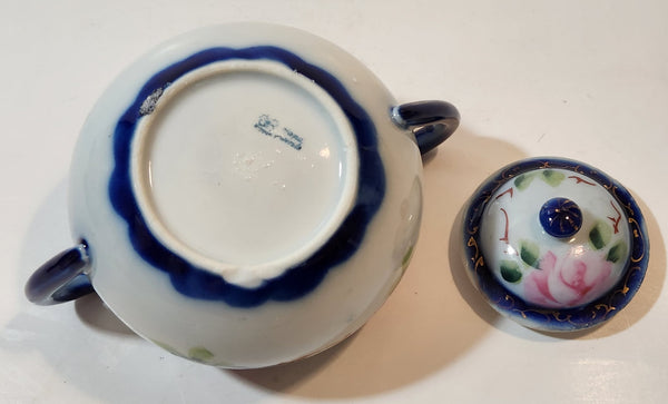 Antique c. 1891-1921 Nippon Pink Rose Flowers White and Blue Hand Painted Porcelain Sugar Bowl