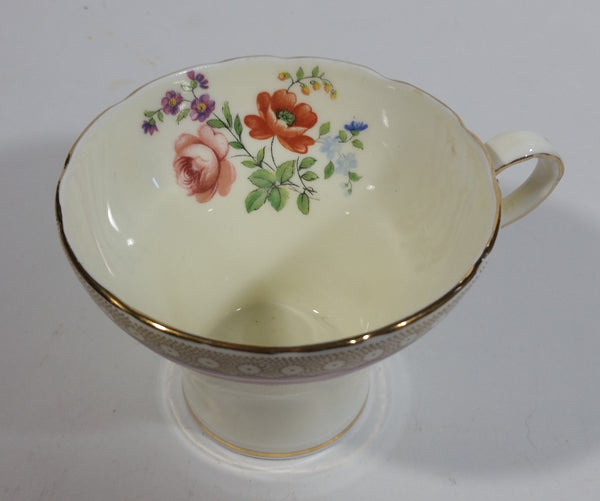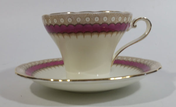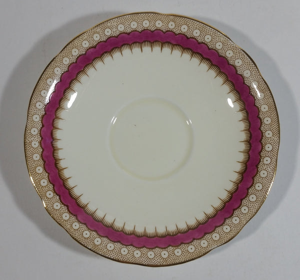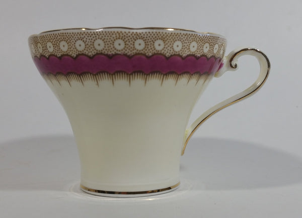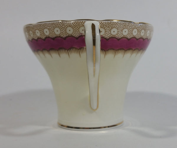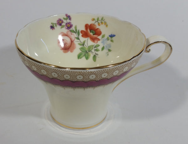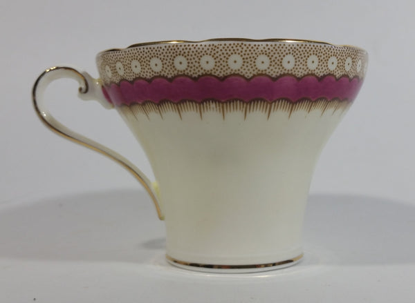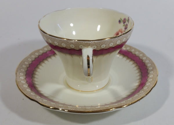 Antique c. 1934 Aynsley Bone China Maroon Red and Gold Floral Tea Cup & Saucer Set - Rare Mixed Flower Pattern