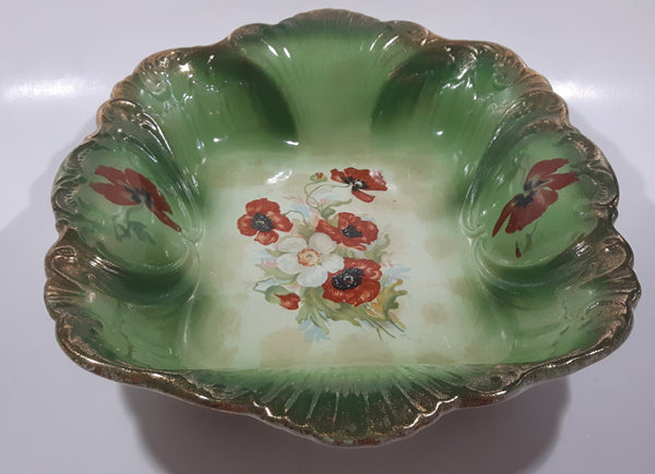 Antique Crown Staffordshire Flower Poppy Themed 10" x 12 1/4" Hand Painted Porcelain Bowl