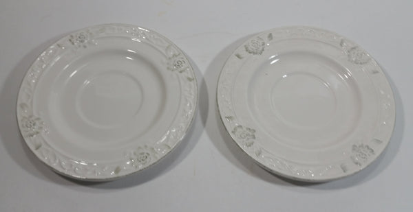 Bombay Company Set of 2 White Embossed Floral Design 6" China Side Plates