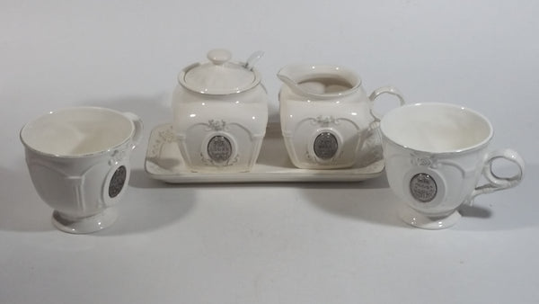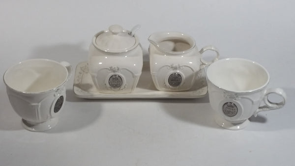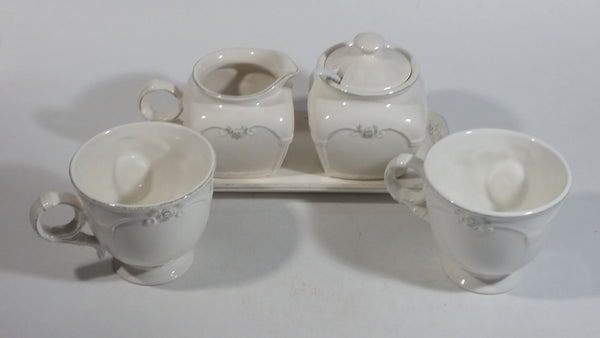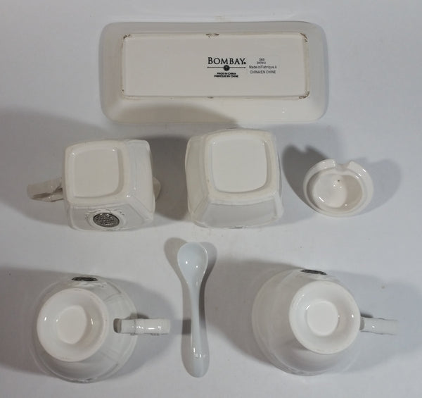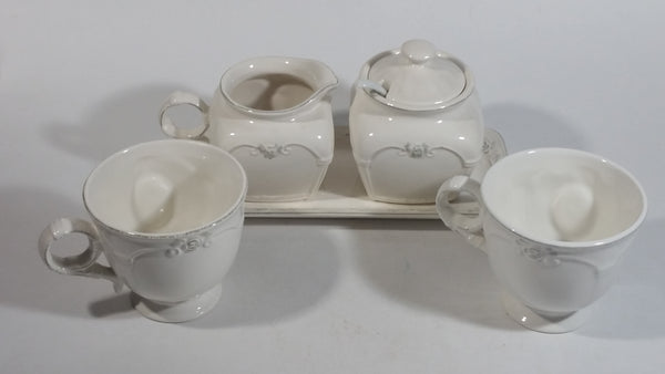 Bombay Company White Embossed Floral Design Creamer, Sugar Bowl, Tea Cup Set