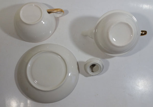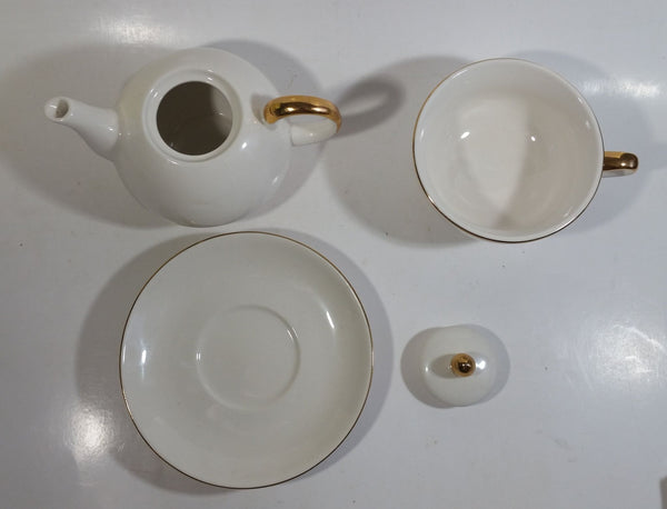 White and Gold Trim Combination Teapot Tea Cup Ceramic Collectible