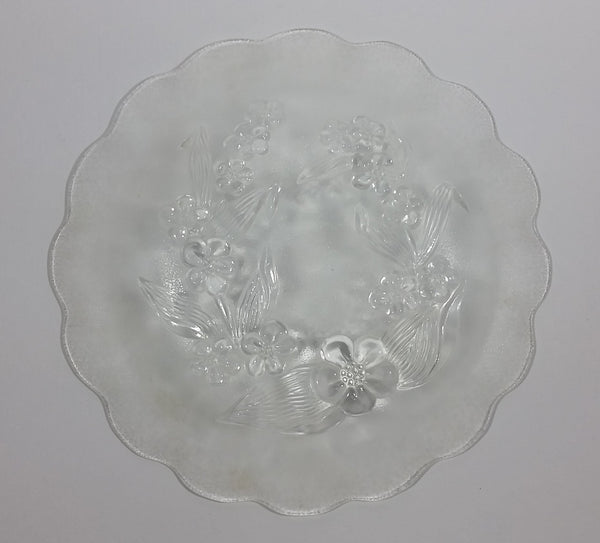 Flower Floral Decor Clear Frosted Embossed Glass 7" Dinner Plate - KIG Indonesia