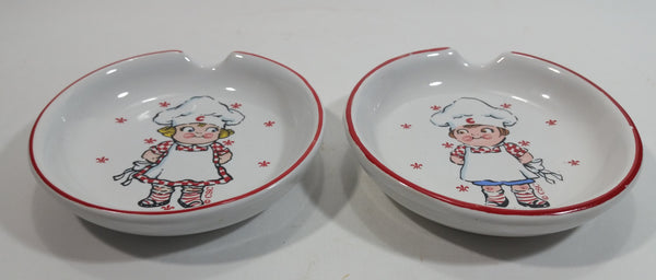 Set of 2 Campbell's Soup Kids Boy and Girl Children Design Good Ceramic Spoon Rest Holder