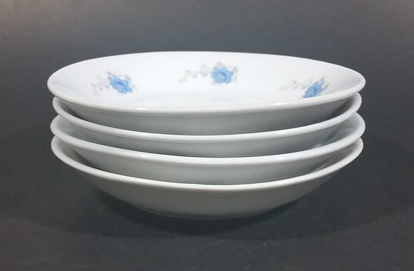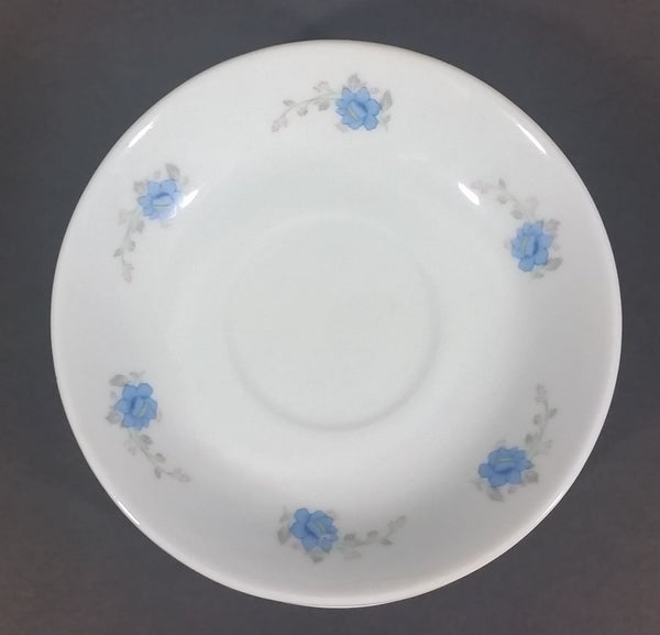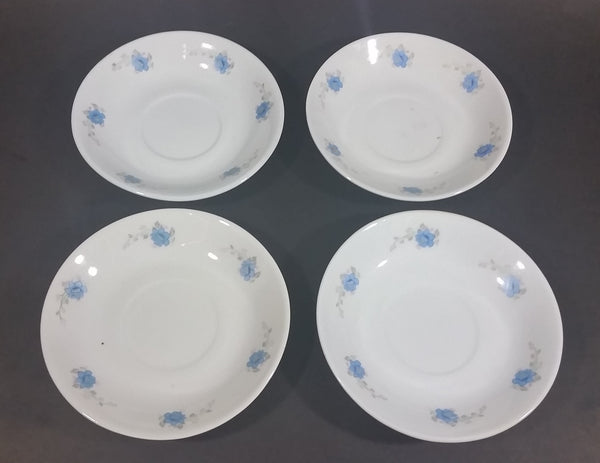 Set of 4 White with Blue Floral Flower Decor Tea Cup Saucers - Made in China